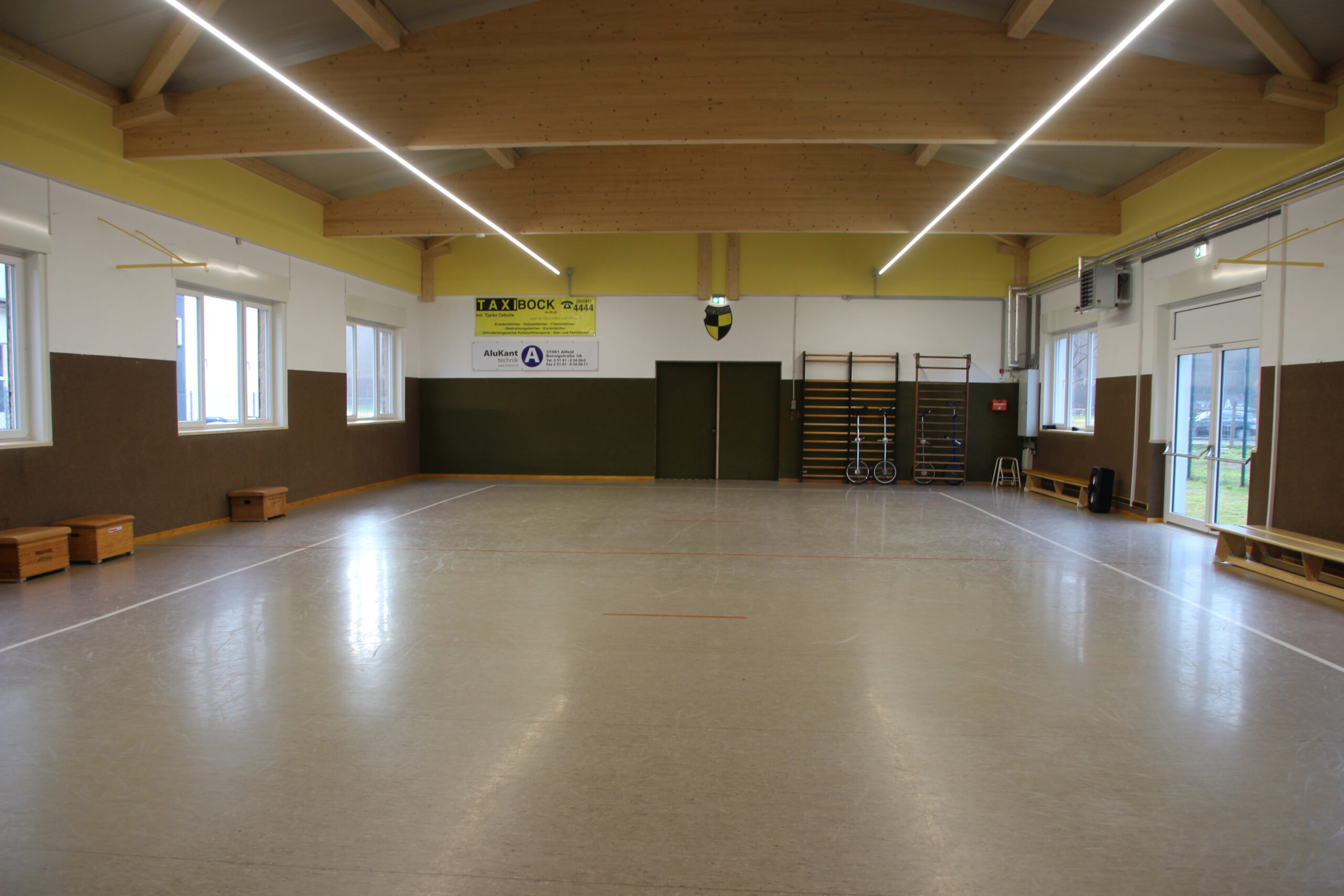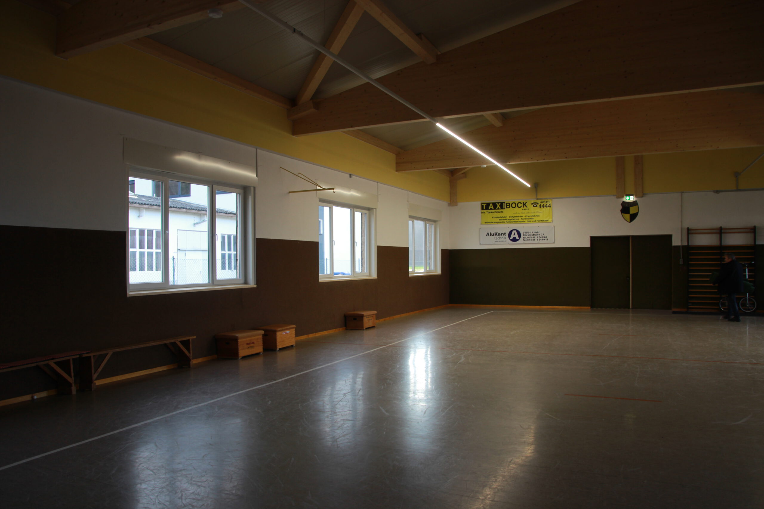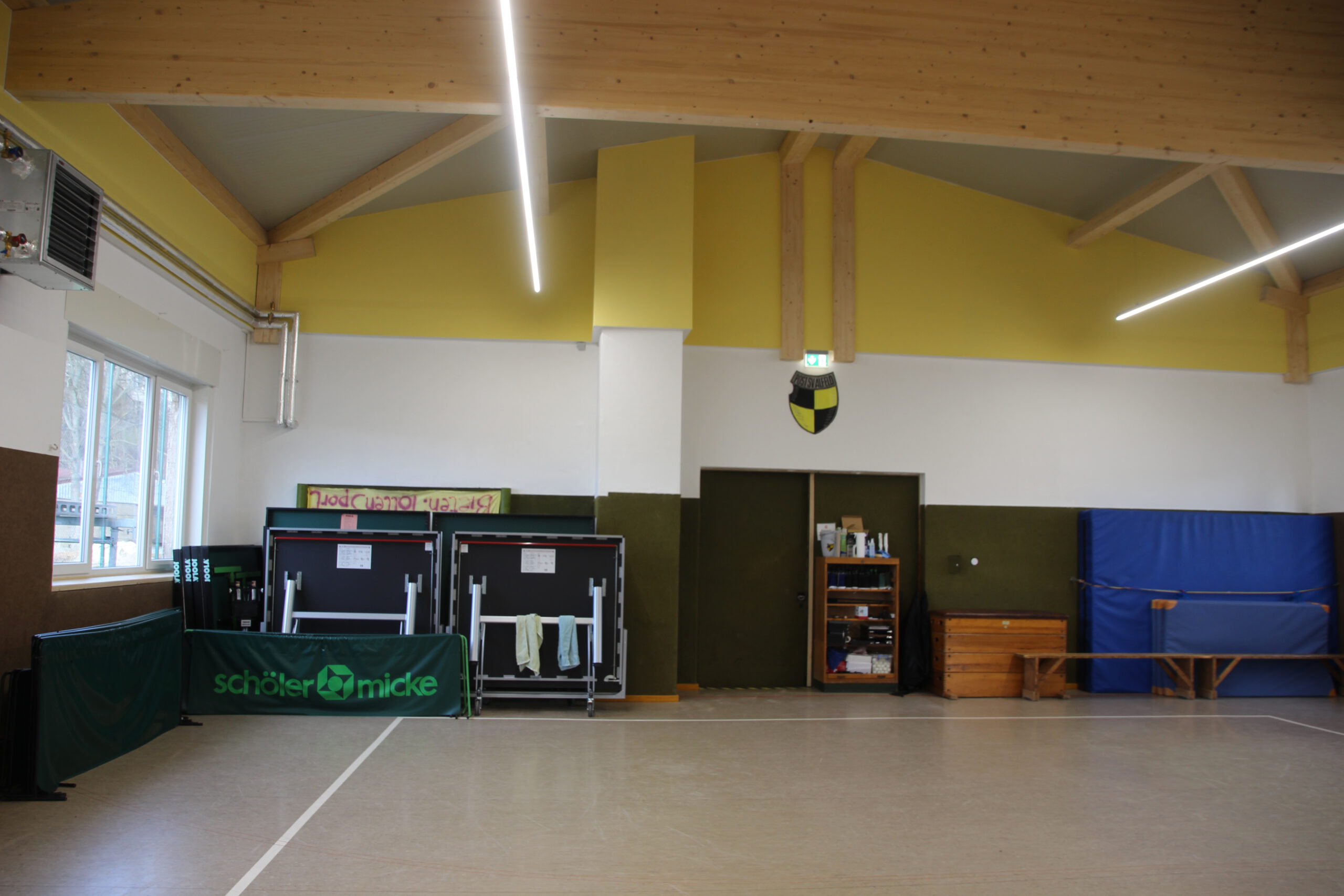 Dank großer Unterstützung durch Sponsoren und Mitglieder abgeschlossen Auch Bürgerstiftung und Lions Club fördern Renovierungsmaßnahmen / Sportler trainieren wieder Zwei Jahre und sechs Monate musste der Post SV Alfeld auf seine Halle verzichten. Trainingsmöglichkeiten für die Sparten Tischtennis, Jonglage und Gymnastik waren dank der guten Zusammenarbeit mit der Stadt auf andere Einrichtungen verteilt Nachdem feststand, dass das Dach der Mitte der 1950er Jahre erbauten Halle marode ist, kümmerte sich der Vorstand um die Finanzierung eines Sanierungsplanes, der zusätzlich zum Dach auch die Erneuerung der aus dem Jahr 1967 stammenden Heizungsanlage, der Beleuchtung und der Außenfassade inklusive der Fenster vorsah. Der Verein, der dafür rund 230 000 Euro aufbringen musste, beantragte ein KFW-Darlehen und Fördergelder nach der Kommunalrichtlinie beim Bund. „Durch die zusätzliche Unterstützung des Landessportbundes, des Landkreises Hildesheim, der PSD Bank Hannover, des Überlandwerks, der Avacon Netz GmbH, der Volksbank Alfeld, der Sparkasse HGP, der Firma Alu-Kanttechnik und vieler weiterer Firmen und Privatspender konnten wir das Projekt realisieren. Außerdem haben uns zahlreiche Vereinsmitglieder mit Muskelkraft aber auch mit ihrem Wissen zur Seite gestanden. Hier sind besonders der Architekt Hans Zeck und sein Bruder Simon Zeck, der viele Arbeitsstunden in der Halle verbracht hat, zu nennen. Die Gewerke haben wir an örtliche Handwerker vergeben und von deren Beratung profitiert. Außerdem sinken für uns durch die energetische Sanierung die Betriebskosten“, erklärt der erste Vorsitzende des Post SV, Markus Kolle, dem Vorsitzenden der Bürgerstiftung Alfeld, Ernst Martin Behrens, und Dr. Jörg Hahne, dem Präsident des Lions Clubs Alfeld, die sich ein Bild vom Ergebnis machten. Gedämmtes Dach, neue Fenster und mit neuer Außenfassade versehen: Der Energiebedarf für die Post SV-Halle an der Ziegelmasch dürfte in der Zukunft deutlich niedriger ausfallen. Foto: Susanne RöthigBeide Organisationen haben mit je 5000 Euro zum Gelingen beigetragen. „Sie leisten hier einen wertvollen Beitrag für die Gesellschaft“, sagte Dr. Jörg Hahne. Auch im Vorstand der Bürgerstiftung habe es keine Diskussion gegeben. Die Halle und die damit verbundenen sportlichen Möglichkeiten kommen vielen Menschen zugute“, so Ernst Martin Behrens. „Wir sind sehr dankbar, dass Sie uns in einer existenzbedrohenden Situation mit dieser großzügigen Förderung unterstützt haben“, sagt Markus Kolle. Seit Februar seien die Tischtennisspieler und die Jongleure wieder mit einem entsprechenden Hygienekonzept ins Training eingestiegen. „Immer nur zwei Sportler können die Halle gleichzeitig nutzen“, erklärt Sozialwartin Birgit Schneider. „Sehnlichst hoffen wir aber auf eine Trainingsmöglichkeit für die SchwimmerInnen und die Nichtschwimmerausbildung. Einige Mitglieder dieser Sparte haben ihre Vereinszugehörigkeit bereits gekündigt. Mit sinkender Mitgliederzahl wird es natürlich für uns auch schwierig, die anfallenden Kosten zu tragen.“ Der Post SV hat zurzeit rund 300 Mitglieder, die nun neben den Trainingsmöglichkeiten auch wieder, sobald das möglich ist, für Versammlungen oder Veranstaltungen ein eigenes Dach über dem Kopf haben. Ganz arbeitslos werden die freiwilligen Helfer allerdings noch nicht: Rund um die Halle sind noch Pflasterarbeiten zu erledigen. Vielen Dank an die „Sieben“ für diesen Artikel. https://www.sieben-region.de/post-sv-hallensanierung/ Januar 2021: Die Sanierung der Posthalle ist so gut wie abgeschlossen Nach einigen Schwierigkeiten mit der Beitragsbearbeitung (das Problem saß wie so oft 30 cm vorm Bildschirm) ist seit Oktober 2020 viel in und an der Halle passiert. Nachdem Ende Mai zunächst das alte Dach abgetragen, die neuen Balken eingesetzt und schließlich die neuen schicken Isobleche installiert wurden, begannen im Juni die Arbeiten zur Erneuerung der Heizung und Elektrik sowie der Rohbauarbeiten an den offengelegten Giebelseiten. Die alte „Kaiser“ Heizung aus dem Jahre 1967 (angeblich soll sie noch älter sein) wurde demontiert und schafft Platz in der Halle, da die neue Heizung nunmehr mit zwei kleinen Umluftventilatoren auskommt. Und auch die Umkleiden haben nun zwei Heizkörper erhalten. Im Juli haben nun die Elektriker die neuen Lichtbänder installiert, die für ein helles, energiesparendes Licht sorgen. Termingerecht konnte Ende Juli die Lichtinstallation abgeschlossen werden. Die von der Firma Thiemt verdeckten offenen Giebelseiten, die bisher von der abgehängten Hallendecke verdeckt waren, wurden von den Vereinsmitgliedern mit einem neuen Anstrich versehen und leuchten nun in einem freundlichen Vereinsgelb. Darüber hinaus wurde das Außengelände insbesondere von den Damen der Tischtennisabteilung einer Intensivreinigung unterzogen. Nach einer Verschnaufpause im August ging es dann im September an die Detailplanung zur Fenster- und Fluchttürinstallation. Vorab wurden die alten Fenster mal wieder mit viel eigener Muskelkraft ausgebaut und entsorgt. Auch ein Teil der alten Hallenwand musste für die neue Fluchttür abgerissen werden. Dann ereilten uns leider auch die viel berüchtigten Planänderungen. Kurz vor der Anlieferung wurde der Einbau der Fluchttür abgesagt, da sie einen Transportschaden erlitten hatte. Egal, Anfang November war unsere Halle endlich wieder dicht. Auch der erneute Lockdown konnte uns nicht davon abhalten, wenn auch unter Einschränkungen, die restlichen „Feinarbeiten“ zu erledigen. Nun heißt es im Inneren aufzuräumen, den Staub von 2 1/2 Jahren Stillstand wegzuwischen und die Halle für die Wiederaufnahme des Sportbetriebs vorzubereiten. Außen ist schon an einer Seite die neue Hallenwand zu erkennen. Im Zusammenhang der Dachsanierung wurde auch durch eine Erneuerung der Hallenbeleuchtung sowie der Heizungsanlage und der Fenster ein erheblicher Beitrag zur Energie- und somit CO2-Einsparung ge