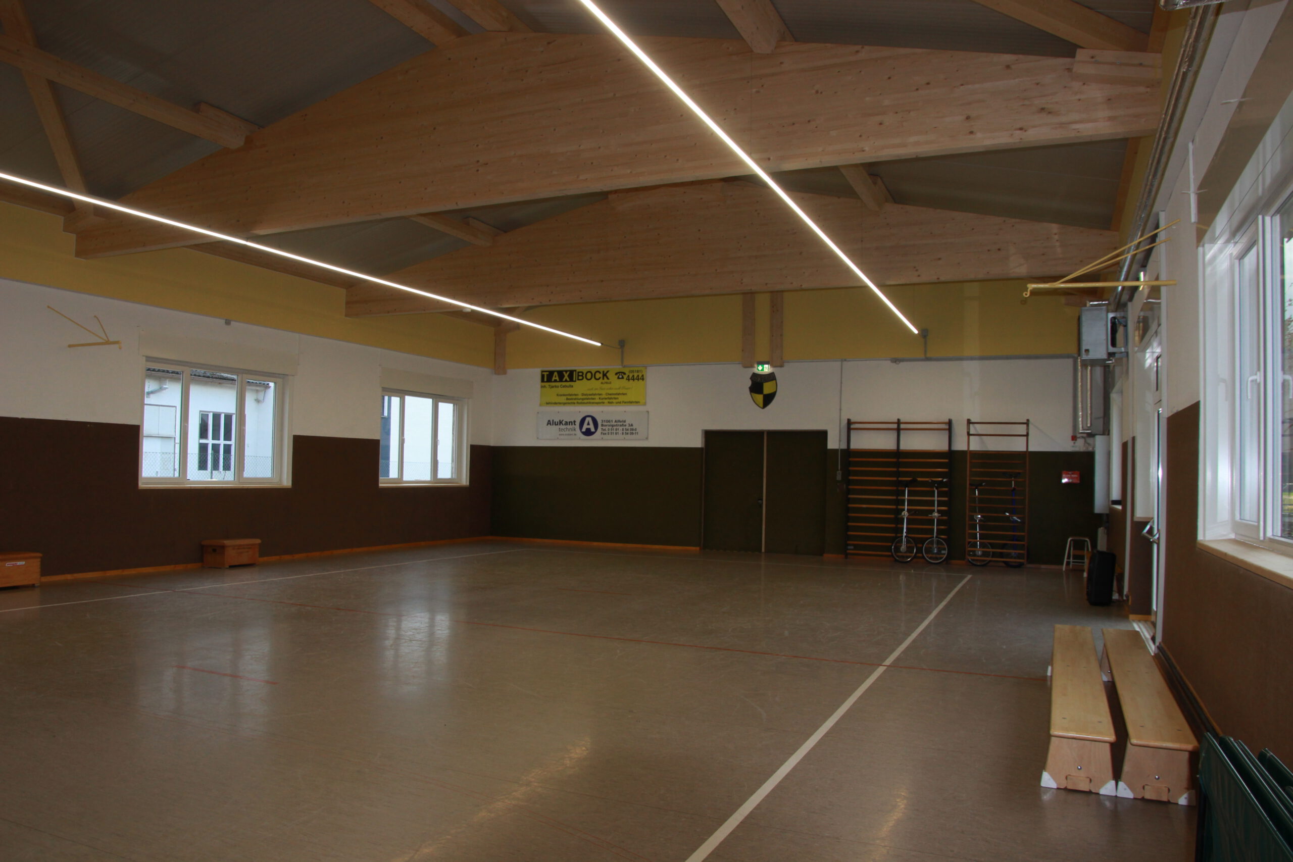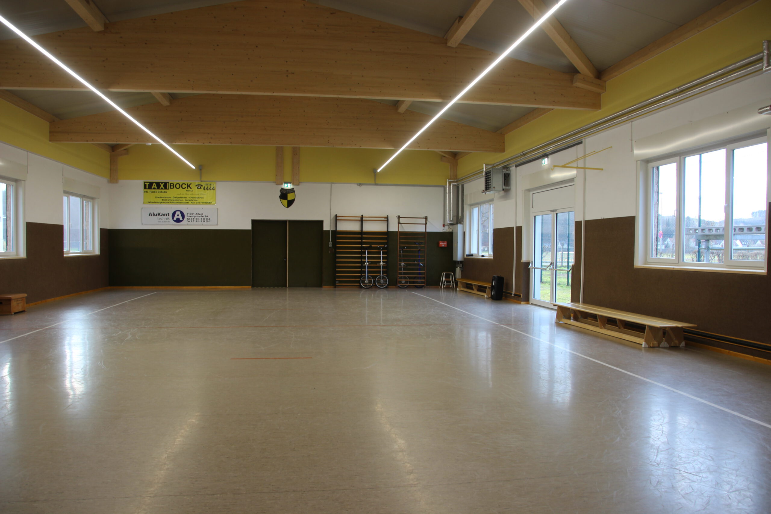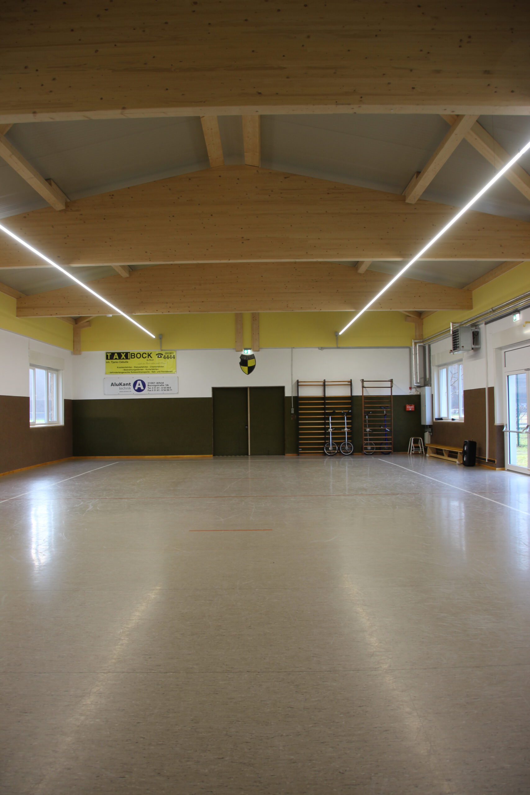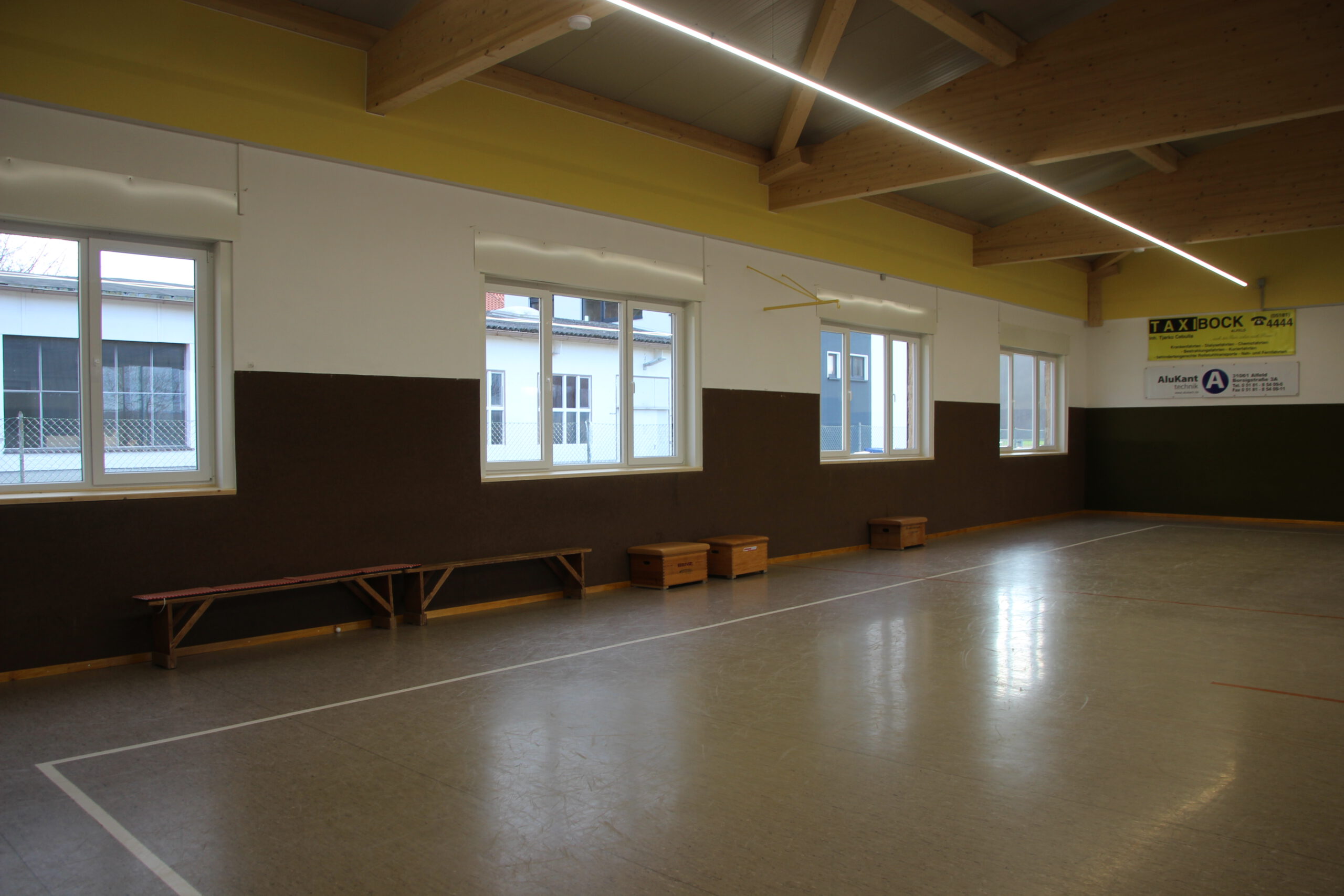 Dank großer Unterstützung durch Sponsoren und Mitglieder abgeschlossen Auch Bürgerstiftung und Lions Club fördern Renovierungsmaßnahmen / Sportler trainieren wieder Zwei Jahre und sechs Monate musste der Post SV Alfeld auf seine Halle verzichten. Trainingsmöglichkeiten für die Sparten Tischtennis, Jonglage und Gymnastik waren dank der guten Zusammenarbeit mit der Stadt auf andere Einrichtungen verteilt Nachdem feststand, dass das Dach der Mitte der 1950er Jahre erbauten Halle marode ist, kümmerte sich der Vorstand um die Finanzierung eines Sanierungsplanes, der zusätzlich zum Dach auch die Erneuerung der aus dem Jahr 1967 stammenden Heizungsanlage, der Beleuchtung und der Außenfassade inklusive der Fenster vorsah. Der Verein, der dafür rund 230 000 Euro aufbringen musste, beantragte ein KFW-Darlehen und Fördergelder nach der Kommunalrichtlinie beim Bund. „Durch die zusätzliche Unterstützung des Landessportbundes, des Landkreises Hildesheim, der PSD Bank Hannover, des Überlandwerks, der Avacon Netz GmbH, der Volksbank Alfeld, der Sparkasse HGP, der Firma Alu-Kanttechnik und vieler weiterer Firmen und Privatspender konnten wir das Projekt realisieren. Außerdem haben uns zahlreiche Vereinsmitglieder mit Muskelkraft aber auch mit ihrem Wissen zur Seite gestanden. Hier sind besonders der Architekt Hans Zeck und sein Bruder Simon Zeck, der viele Arbeitsstunden in der Halle verbracht hat, zu nennen. Die Gewerke haben wir an örtliche Handwerker vergeben und von deren Beratung profitiert. Außerdem sinken für uns durch die energetische Sanierung die Betriebskosten“, erklärt der erste Vorsitzende des Post SV, Markus Kolle, dem Vorsitzenden der Bürgerstiftung Alfeld, Ernst Martin Behrens, und Dr. Jörg Hahne, dem Präsident des Lions Clubs Alfeld, die sich ein Bild vom Ergebnis machten. Gedämmtes Dach, neue Fenster und mit neuer Außenfassade versehen: Der Energiebedarf für die Post SV-Halle an der Ziegelmasch dürfte in der Zukunft deutlich niedriger ausfallen. Foto: Susanne RöthigBeide Organisationen haben mit je 5000 Euro zum Gelingen beigetragen. „Sie leisten hier einen wertvollen Beitrag für die Gesellschaft“, sagte Dr. Jörg Hahne. Auch im Vorstand der Bürgerstiftung habe es keine Diskussion gegeben. Die Halle und die damit verbundenen sportlichen Möglichkeiten kommen vielen Menschen zugute“, so Ernst Martin Behrens. „Wir sind sehr dankbar, dass Sie uns in einer existenzbedrohenden Situation mit dieser großzügigen Förderung unterstützt haben“, sagt Markus Kolle. Seit Februar seien die Tischtennisspieler und die Jongleure wieder mit einem entsprechenden Hygienekonzept ins Training eingestiegen. „Immer nur zwei Sportler können die Halle gleichzeitig nutzen“, erklärt Sozialwartin Birgit Schneider. „Sehnlichst hoffen wir aber auf eine Trainingsmöglichkeit für die SchwimmerInnen und die Nichtschwimmerausbildung. Einige Mitglieder dieser Sparte haben ihre Vereinszugehörigkeit bereits gekündigt. Mit sinkender Mitgliederzahl wird es natürlich für uns auch schwierig, die anfallenden Kosten zu tragen.“ Der Post SV hat zurzeit rund 300 Mitglieder, die nun neben den Trainingsmöglichkeiten auch wieder, sobald das möglich ist, für Versammlungen oder Veranstaltungen ein eigenes Dach über dem Kopf haben. Ganz arbeitslos werden die freiwilligen Helfer allerdings noch nicht: Rund um die Halle sind noch Pflasterarbeiten zu erledigen. Vielen Dank an die „Sieben“ für diesen Artikel. https://www.sieben-region.de/post-sv-hallensanierung/ Januar 2021: Die Sanierung der Posthalle ist so gut wie abgeschlossen Nach einigen Schwierigkeiten mit der Beitragsbearbeitung (das Problem saß wie so oft 30 cm vorm Bildschirm) ist seit Oktober 2020 viel in und an der Halle passiert. Nachdem Ende Mai zunächst das alte Dach abgetragen, die neuen Balken eingesetzt und schließlich die neuen schicken Isobleche installiert wurden, begannen im Juni die Arbeiten zur Erneuerung der Heizung und Elektrik sowie der Rohbauarbeiten an den offengelegten Giebelseiten. Die alte „Kaiser“ Heizung aus dem Jahre 1967 (angeblich soll sie noch älter sein) wurde demontiert und schafft Platz in der Halle, da die neue Heizung nunmehr mit zwei kleinen Umluftventilatoren auskommt. Und auch die Umkleiden haben nun zwei Heizkörper erhalten. Im Juli haben nun die Elektriker die neuen Lichtbänder installiert, die für ein helles, energiesparendes Licht sorgen. Termingerecht konnte Ende Juli die Lichtinstallation abgeschlossen werden. Die von der Firma Thiemt verdeckten offenen Giebelseiten, die bisher von der abgehängten Hallendecke verdeckt waren, wurden von den Vereinsmitgliedern mit einem neuen Anstrich versehen und leuchten nun in einem freundlichen Vereinsgelb. Darüber hinaus wurde das Außengelände insbesondere von den Damen der Tischtennisabteilung einer Intensivreinigung unterzogen. Nach einer Verschnaufpause im August ging es dann im September an die Detailplanung zur Fenster- und Fluchttürinstallation. Vorab wurden die alten Fenster mal wieder mit viel eigener Muskelkraft ausgebaut und entsorgt. Auch ein Teil der alten Hallenwand musste für die neue Fluchttür abgerissen werden. Dann ereilten uns leider auch die viel berüchtigten Planänderungen. Kurz vor der Anlieferung wurde der Einbau der Fluchttür abgesagt, da sie einen Transportschaden erlitten hatte. Egal, Anfang November war unsere Halle endlich wieder dicht. Auch der erneute Lockdown konnte uns nicht davon abhalten, wenn auch unter Einschränkungen, die restlichen „Feinarbeiten“ zu erledigen. Nun heißt es im Inneren aufzuräumen, den Staub von 2 1/2 Jahren Stillstand wegzuwischen und die Halle für die Wiederaufnahme des Sportbetriebs vorzubereiten. Außen ist schon an einer Seite die neue Hallenwand zu erkennen. Im Zusammenhang der Dachsanierung wurde auch durch eine Erneuerung der Hallenbeleuchtung sowie der Heizungsanlage und der Fenster ein erheblicher Beitrag zur Energie- und somit CO2-Einsparung ge